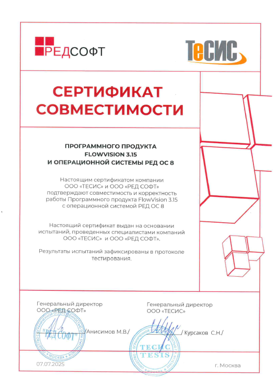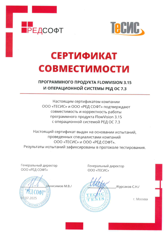 Сертификат совместимости «РЕД ОС 7.3», 2025 г.