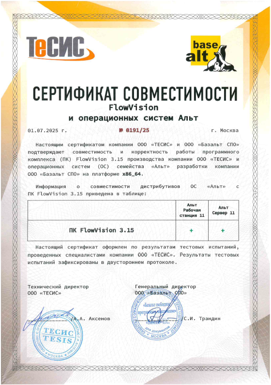 Сертификат совместимости «ALT Linux 11 СП», 2025 г.