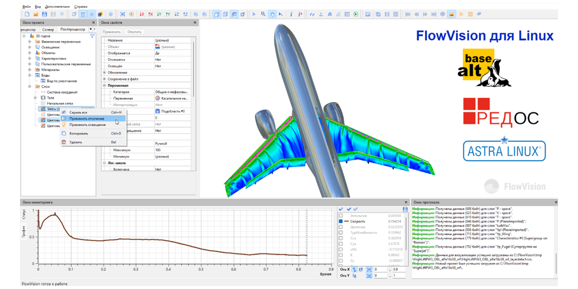 Главное изменение – поддержка Linux во всех модулях FlowVision, включая Пре-Постпроцессор без использования стороннего ПО. Проведено тестирование на трех основных российских операционных системах AstraLinux, ОС «Альт» и РедОС, в том числе на их сертифицированных ФСТЭК версиях. FlowVision поддерживает не только Intel-платформу, но и российскую платформу на базе процессора Эльбрус.