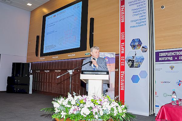 В докладе С.Н.Курсаков рассказал об основных целях и этапах реализации проекта создания ЭЦПС, структуре системы экспериментально-цифровой сертификации, ожидаемых результатах ее использования для мониторинга, диагностики и прогноза состояния дорожных конструкций из полимерных композиционных материалов.